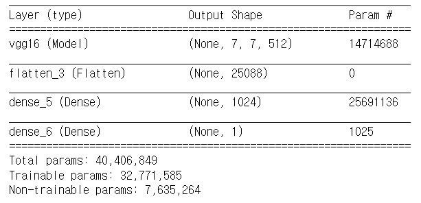 summary를 살펴보면 vgg경우 파라미터가 14714688개