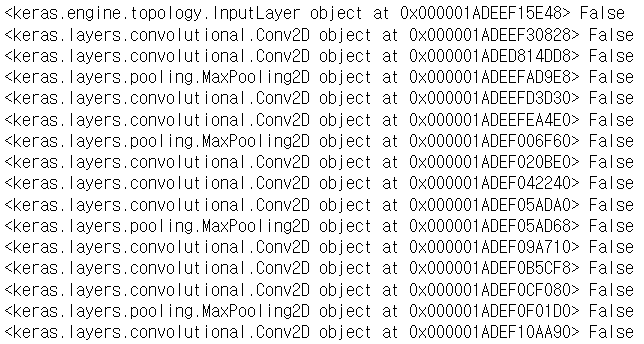 위 사진은 print(layer, layer.trainable) 결과이다.