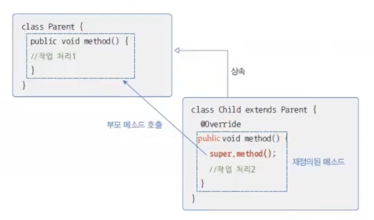 즉, 부모의 메소드도 실행하면서 추가적으로 필요한 작업해야하는 코드도 수행할 수 있다.