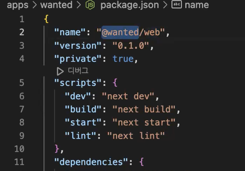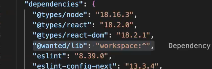그리고 next 프로젝트에 package.json으로 가보면 우리가 추가한 @wantd/lib를 의존하는 것을 확인해 볼 수 있다.