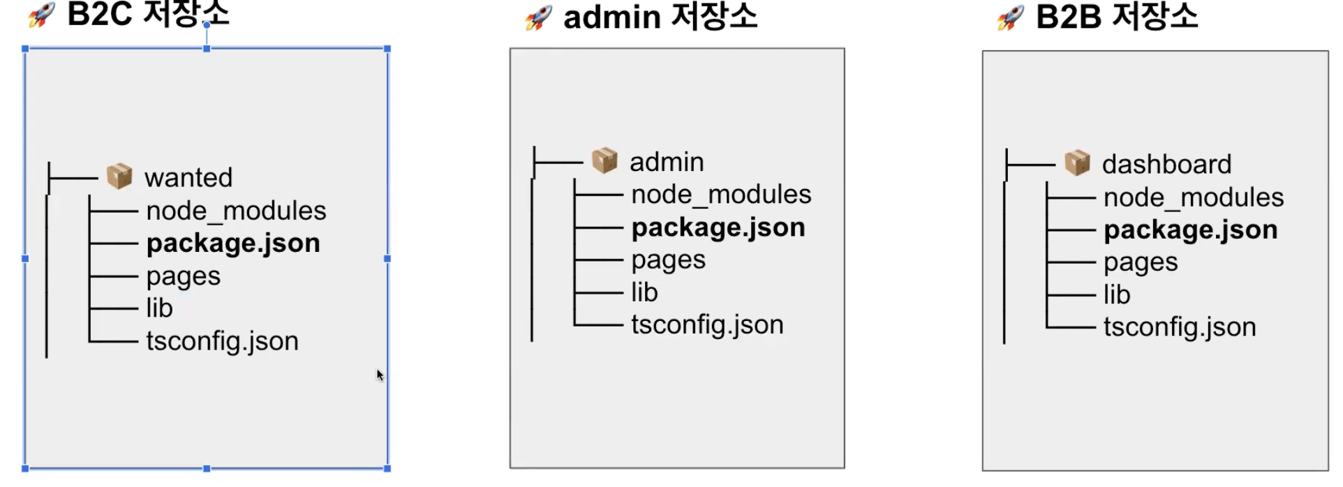 현재 원티드의 멀티레포 구조는 다음과 같다.