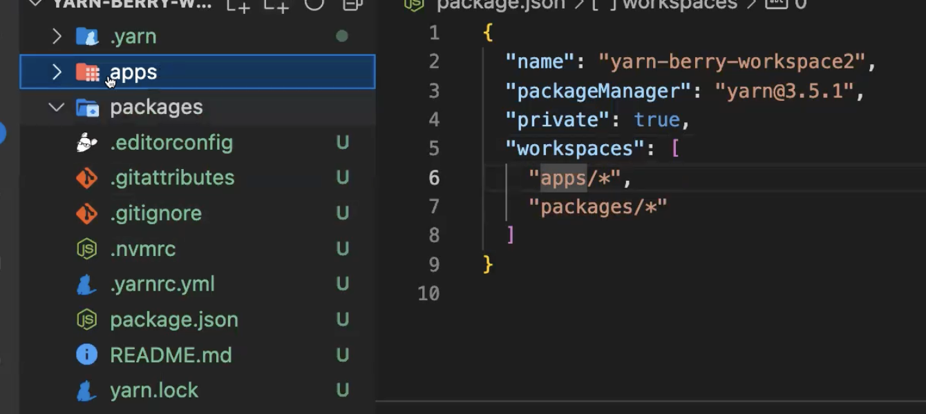 apps 폴더 추가 및 workspaces 배열에 app/* 추가 하기