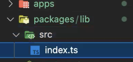 lib아래에 src폴더와 index.ts파일을 만들어 준다. 생성된 index.ts에는 다음 코드를 넣어보자.