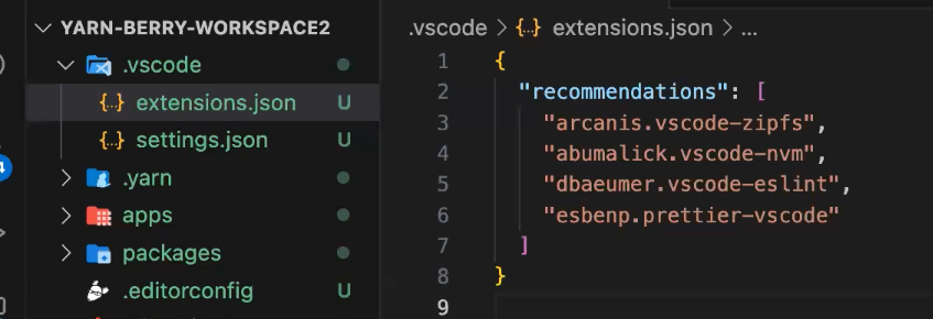 3. .vscode/extenstions.json 에 익스텐션이 추가된 것을 확인한다