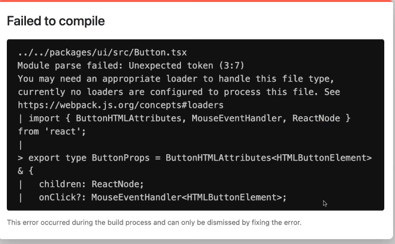 이 오류는 브러우저에서 typescripts 문법을 해석하지 못해서 발생한다.