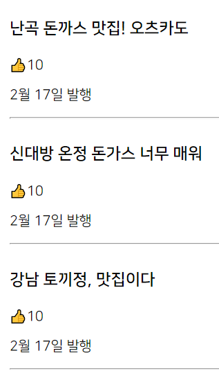 이 문제에 대한 해결 핵심은 글이 세개니까 따봉갯수도 세개가 필요하다.