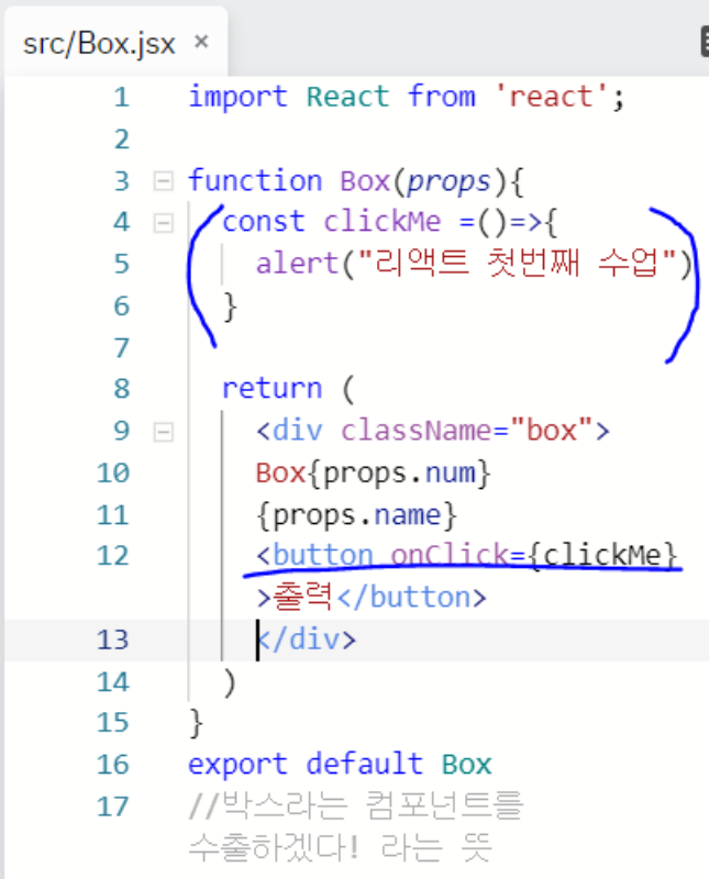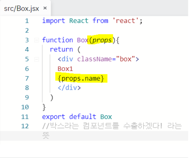박스 컴포넌트 안에 함수를 만들어 준다.