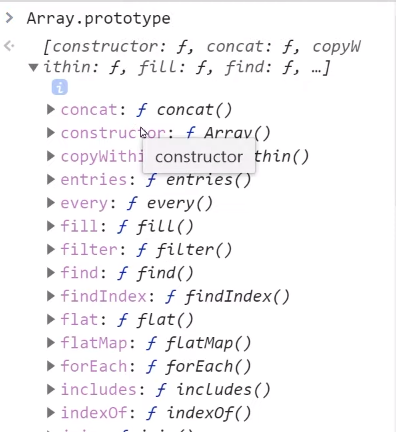 이를 확인 해 보기 위해 array의 prototype을 보면 함수들이 있다.