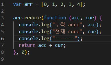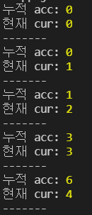 acc(누적값)이 초깃값인 0부터 시작해서 return하는대로 누적되는 것을 볼 수 있다.