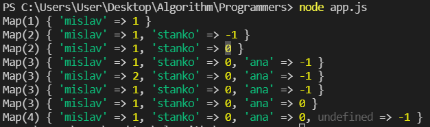 map.set(a, (map.get(a) || 0) + 1); map.set(b, (map.get(b) || 0) - 1); map.get(a)||0