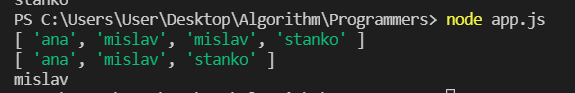 | ["mislav", "stanko", "mislav", "ana"] | ["stanko", "ana", "mislav"] | "mislav" |